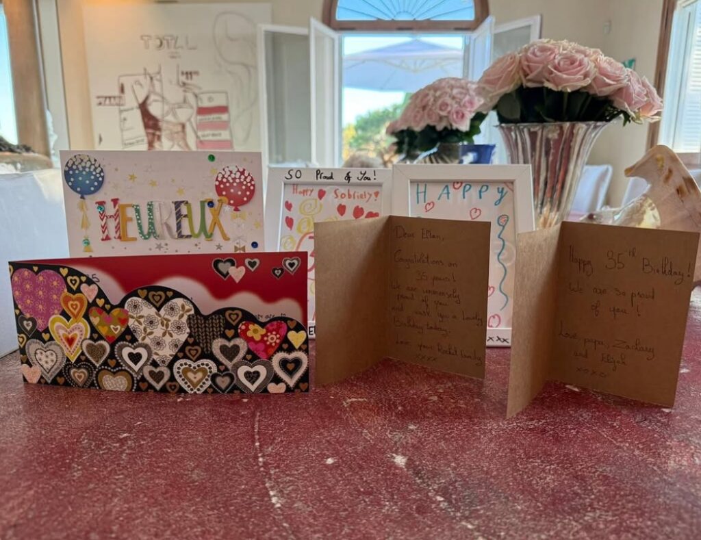 Elton John lo celebró con un emotivo mensaje a sus fans y familiares usando Instagram para conmemorar la fecha con una foto de tarjetas hechas a mano por sus hijos, Elijah y Zachary, junto con un ramo de flores. “Agradecido por todo el amor en mi cumpleaños por la sobriedad”, escribió.