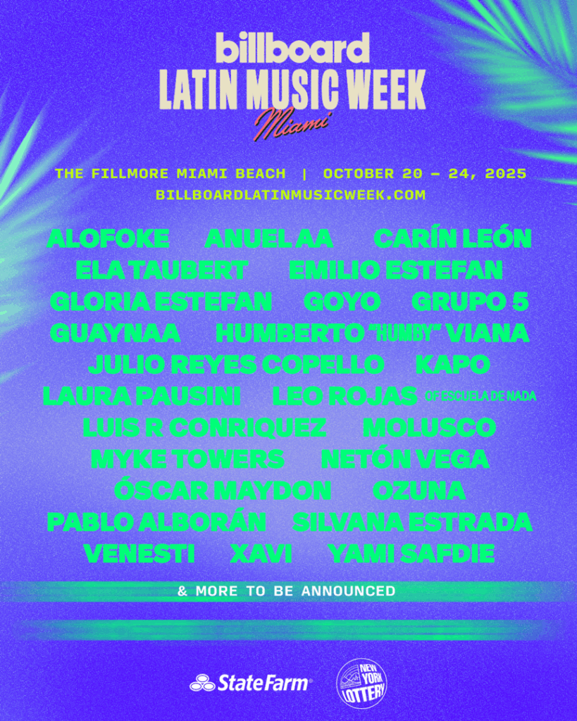 La Semana de la Música Latina Billboard 2025 ha confirmado ademas de DY a Anuel AA, Gloria y Emilio Estefan, Ozuna, Myke Towers, Laura Pausini, Carín León, Silvana Estrada, Pablo Alborán, Ela Taubert, Goyo, Kapo, Luis R. Conriquez, Netón Vega, Óscar Maydon, Xavi y más artistas por anunciar.