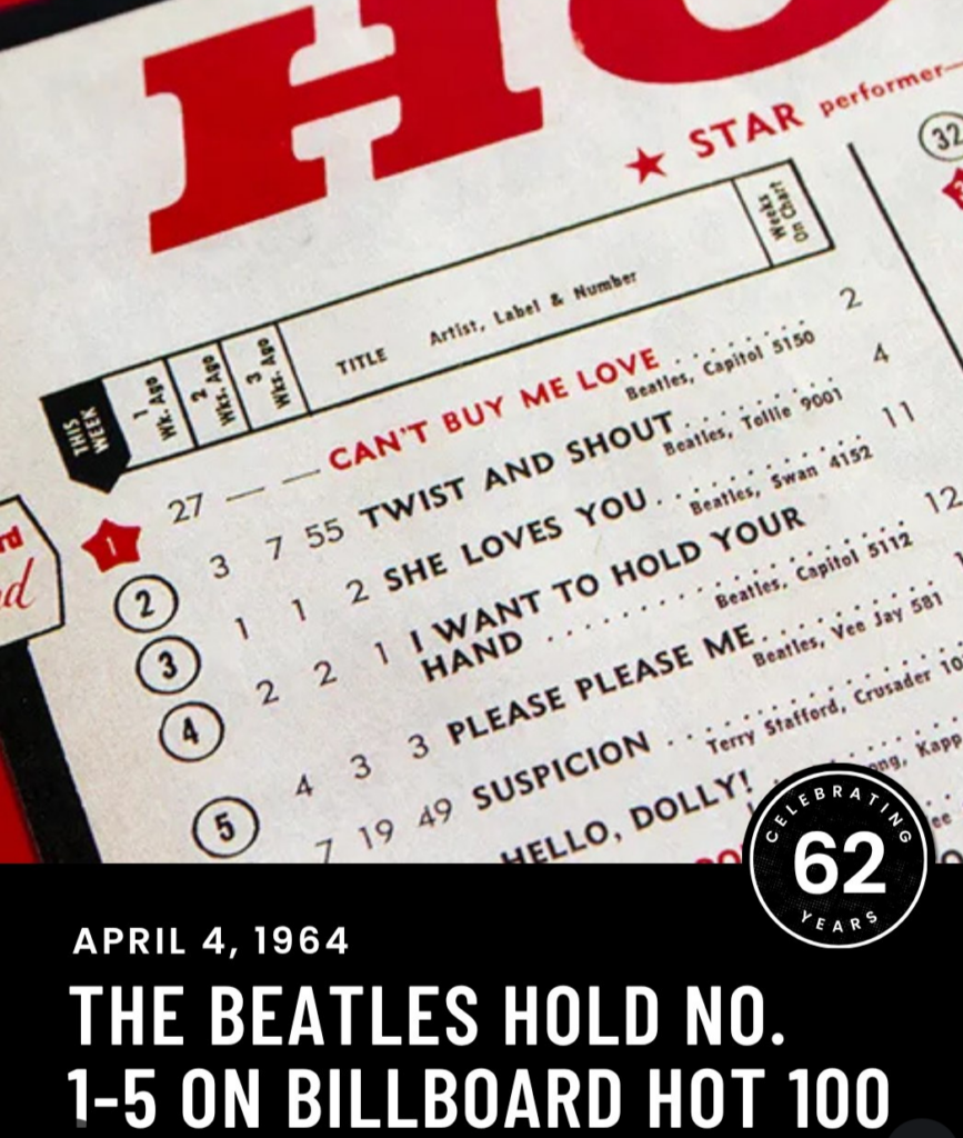 Hace 62 años en abril de 1964 pasó algo histórico en el Hot 100 de Billboard