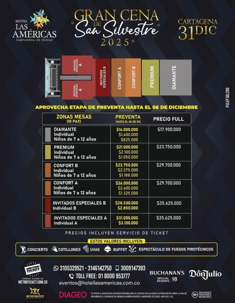 Este año la Fiesta y Cena de San Silvestre que ha atraido más la atención online se realizará en Cartagena, Colombia, una de las ciudades mas espectaculares de todo el continente. Cartagena de Indias está ubicada a orillas del mar Caribe y fue fundada en 1533 por Pedro de Heredia. Su centro histórico, llamado «Ciudad Amurallada», fue declarado Patrimonio Nacional de Colombia en 1959 y por la UNESCO como Patrimonio de la Humanidad en 1984. Cartagena ha desarrollado su zona urbana conservando el centro histórico y convirtiéndose en uno de los célebres destinos turísticos de mayor importancia de Colombia, del Caribe y de todo el hemisferio.