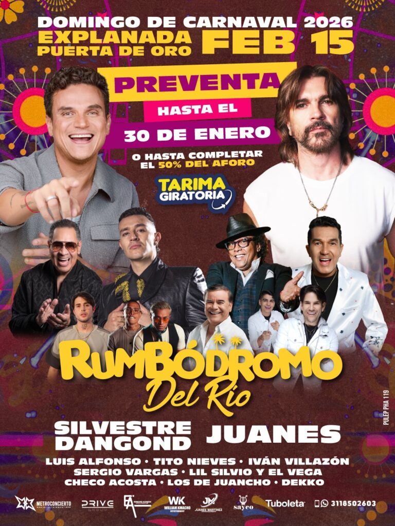 Este Rumbódromo del Río no solo será un espectáculo musical, sino una verdadera celebración del espíritu carnavalero, reuniendo generaciones, ritmos y culturas en un mismo escenario. La organización ha anunciado una producción de alto nivel, con montaje técnico de primer orden, sonido de última tecnología y una experiencia pensada para que todo el público asistente pueda disfrutar de dos noches históricas en la capital del Atlántico, en la costa Caribe de Colombia.