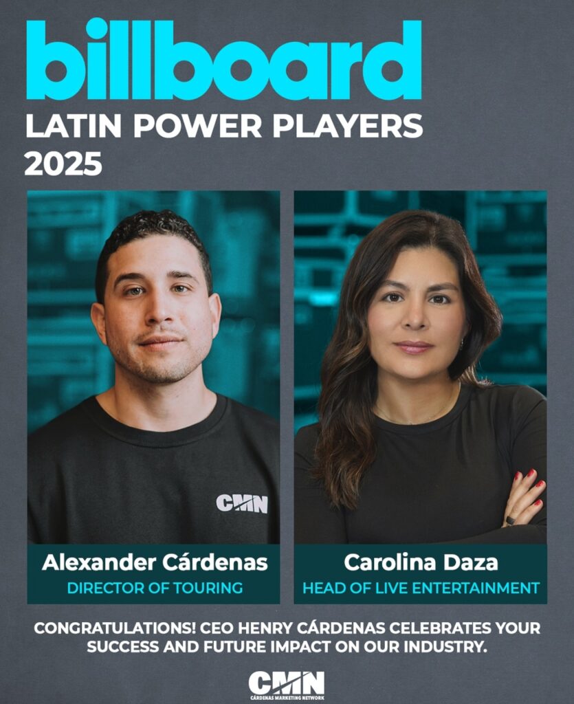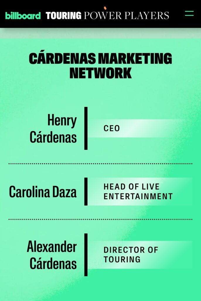 Cardenas Marketing Network ha sido elegida como una de las companias de la música en vivo más importantes del año segun la lista Touring Power Players según Billboard.