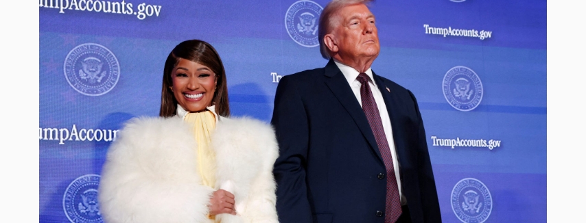 El apoyo de Nicki Minaj a Donald Trump continua cuando ayer miercoles se unió al presidente en el escenario durante la «Trump Accounts Summit» en Washington.