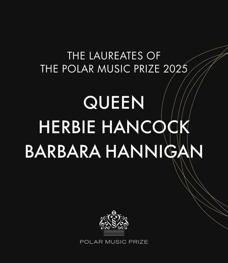 Queen, Herbie Hancock y Barbara Hannigan seran galardonados con el Polar Music Prize (Premio Polar de Música) 2025. La ceremonia se celebrará el martes 27 de mayo en el Grand Hôtel de Estocolmo.