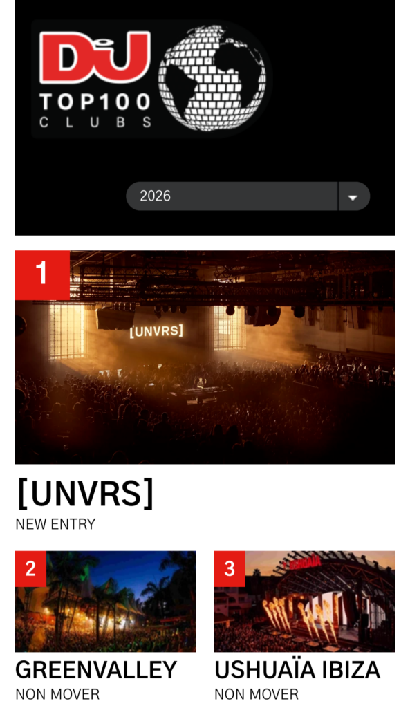 La encuesta Top 100 Clubs en su 21.ª edición, celebra las pistas de baile más emblemáticas del mundo, clasificadas exclusivamente por los votos de la audiencia global de DJ Mag.